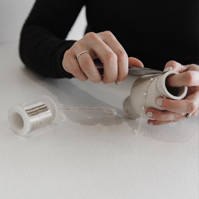 Once all firings are complete, each piece undergoes an array of finishing touches such as sanding and sealing the surfaces, and for some collections, the addition of luxe embellishments like the handcrafted pearl and chain harnesses on some of the Perla pieces. This stage is all about elevating each piece to ensure an outcome of flawless beauty and long term functionality.
